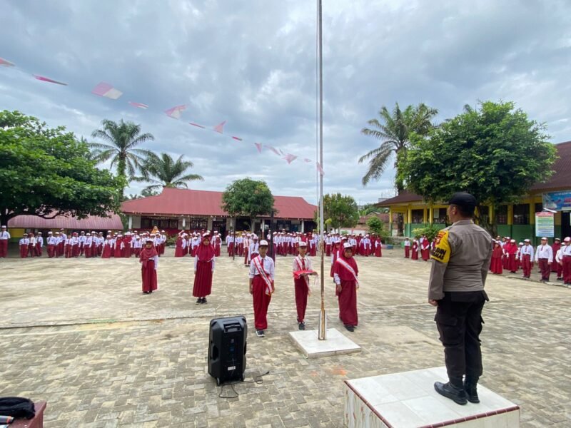 Bhabinkamtibmas AIPDA ASPAN Laksanakan Police Go To School dan Upacara Senin Pagi di SD Negeri 004 Desa Lubuk Ogung