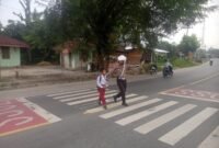 PELALAWAN II Unit Lantas Polsek Bandar Sei Kijang melaksanakan kegiatan pengaturan arus lalu lintas dan menyebrangkan anak sekolah di Jalan Lintas Timur KM. 25…