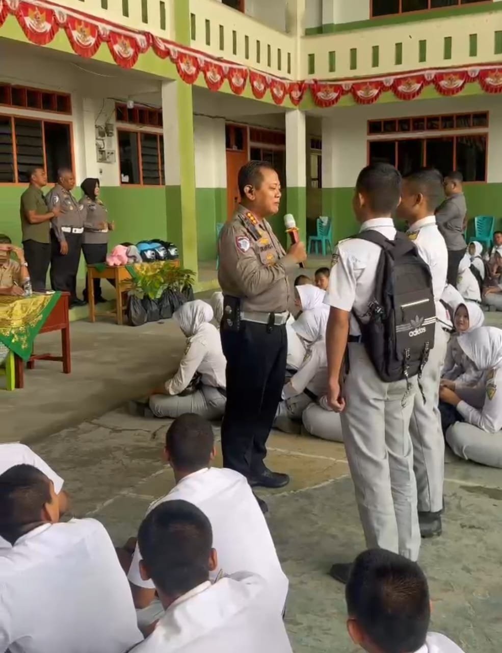 Kombes Pol Taufik hadir didampingi pihak manajemen sekolah dan Kasubdit Kamsel Ditlantas Polda Riau, AKBP Dasri. Kedatangan rombongan Ditlantas disambut hangat oleh para siswa dan siswi yang tampak antusias mengikuti rangkaian kegiatan.