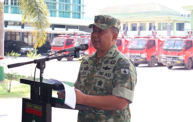 Penyerahan bantuan secara simbolis diterima oleh Pasilog dari Kodim 0315/Tanjungpinang, Kodim 0301/Pekanbaru, Brigif 89/GG, serta Yonarhanud 13/PBY. Rangkaian kegiatan diawali dengan pembukaan, dilanjutkan dengan menyanyikan lagu Indonesia Raya, serta sambutan Kasdam XIX/Tuanku Tambusai. Dalam arahannya, Kasdam menegaskan bahwa 36 unit mobil pemadam kebakaran tersebut merupakan dukungan strategis dalam meningkatkan kesiapsiagaan satuan jajaran Kodam XIX/TT di wilayah Riau dan Kepulauan Riau dalam menghadapi ancaman kebakaran hutan dan lahan (karhutla) yang masih menjadi tantangan serius.