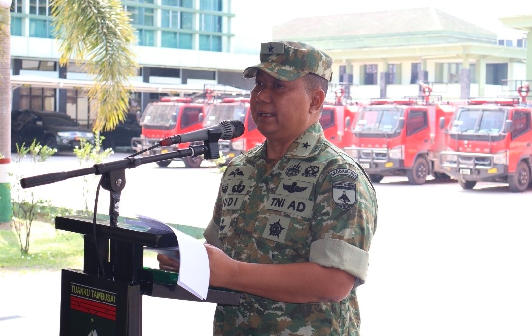 Kegiatan tersebut dipimpin oleh Kasdam XIX/Tuanku Tambusai Brigjen TNI Rudi Hermawan, S.E., M.M., serta dihadiri oleh Pejabat Utama (PJU) Kodam dan Komandan Satuan (Dansat) jajaran Kodam XIX/TT.