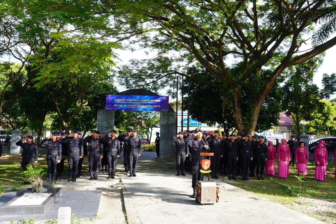 PEKANBARU || Dalam rangka memperingati Hari Ulang Tahun ke-51 Gegana Korps Brimob Polri yang mengusung tema “Gegana Presisi untuk Masyarakat,” Detasemen Gegana Sat Brimob Polda Riau melaksanakan Ziarah Makam dan Tabur Bunga di Taman Makam Bahagia Kusuma Dharma, Jl. Patimura, Pekanbaru Rabu (26/11/2025).