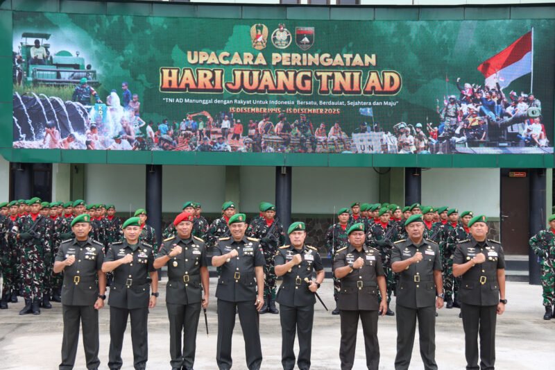 PEKANBARU || Kodam XIX/Tuanku Tambusai melaksanakan Upacara Peringatan Hari Juang TNI Angkatan Darat Tahun 2025 di Lapangan Upacara Makodam XIX/TT, Pekanbaru, Senin (15/12/2025). Upacara tersebut dipimpin langsung oleh Pangdam XIX/Tuanku Tambusai Mayjen TNI Dr. Agus Hadi Waluyo, S.A.P., M.M., CHRMP selaku Inspektur Upacara.