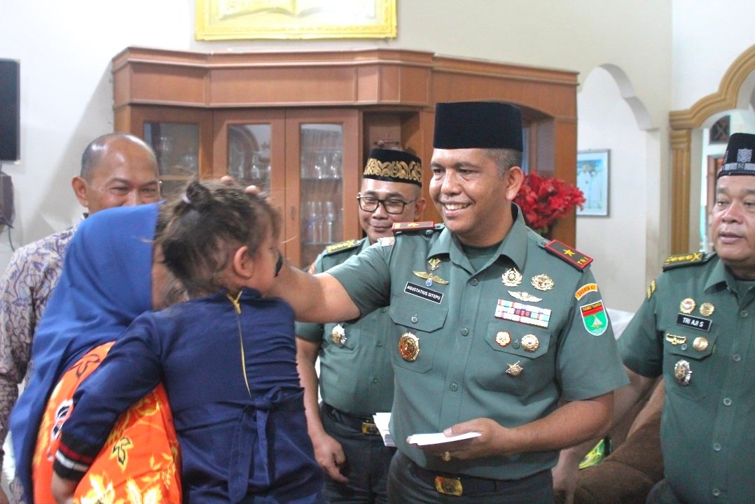 Kegiatan berlangsung hangat dan penuh kebersamaan, menjadi momentum mempererat silaturahmi sekaligus menumbuhkan semangat berbagi. Anak-anak yatim tampak bahagia menerima perhatian dan santunan dari Danrem 031/Wira Bima.