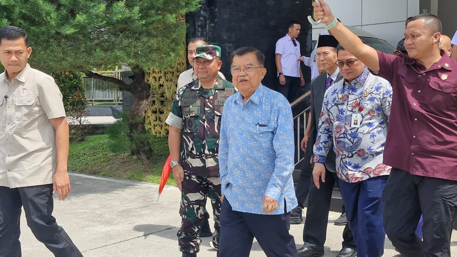 Kedatangan Bapak Dr. (H.C) Drs. H. M. Jusuf Kalla beserta rombongan berlangsung pada pukul 08.20 WIB bertempat di Bandara VIP Sultan Syarif Qasim II, Lanud Roesmin Nurjadin, Pekanbaru.