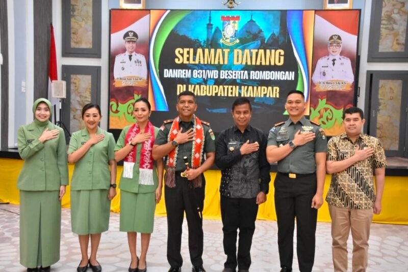 Sementara itu, Danrem 031/WB dalam sambutannya menyampaikan terima kasih atas sambutan hangat dari Pemerintah Kabupaten Kampar. Danrem menegaskan pentingnya kolaborasi dan komunikasi yang solid antara TNI, Pemerintah Daerah, serta seluruh unsur Forkopimda dalam menjaga kondusifitas wilayah.