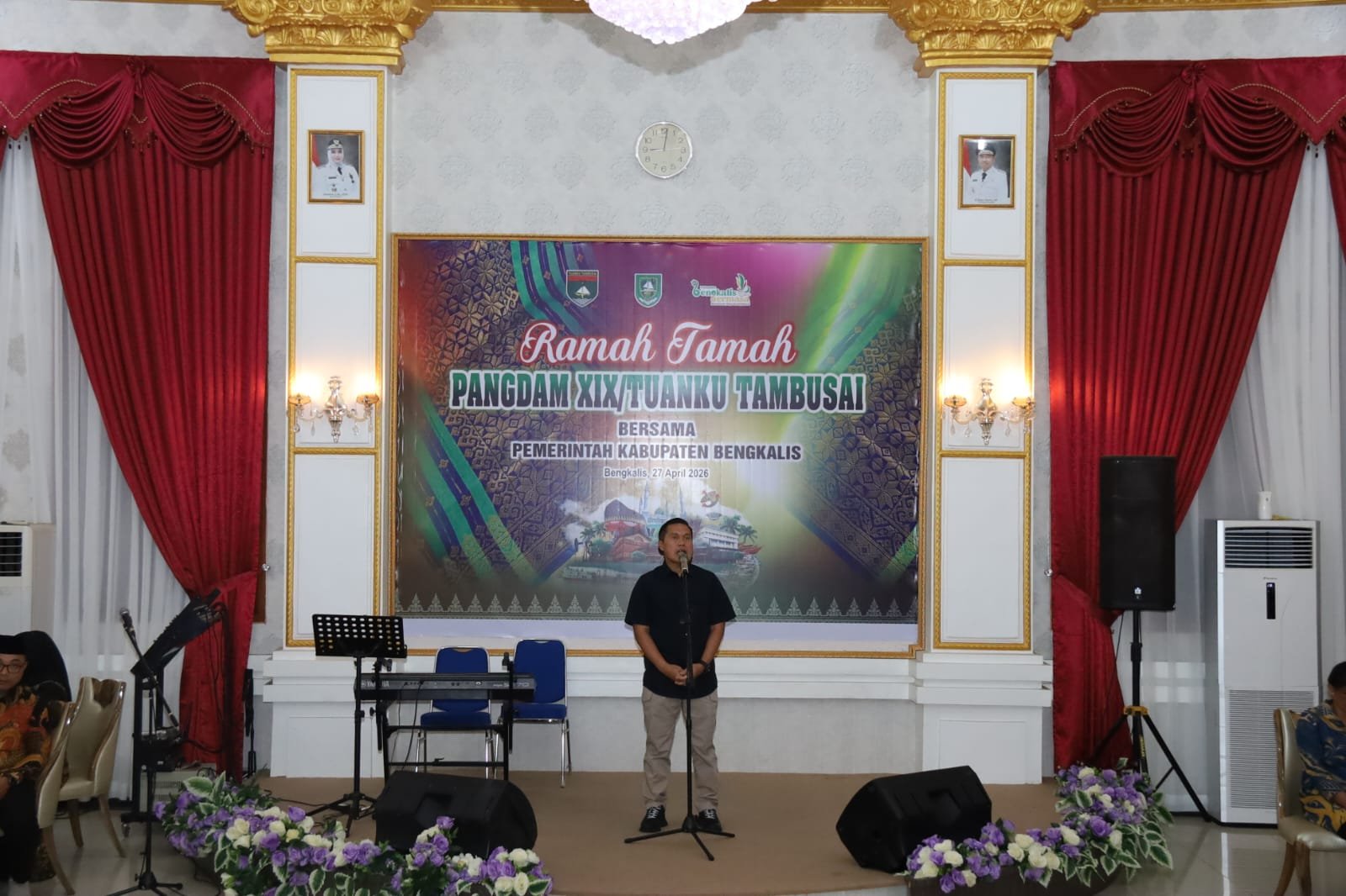 BENGKALIS ||| Pangdam XIX/Tuanku Tambusai Mayjen TNI Dr. Agus Hadi Waluyo, S.A.P., M.M., CHRMP di dampingi PJU Kodam menghadiri kegiatan ramah tamah dengan Pemerintah Kabupaten Bengkalis bersama jajaran Forkopimda Kab. Bengkalis di Wisma Sri Mahkota, Senggoro, Senin (27/4/2026) malam.
