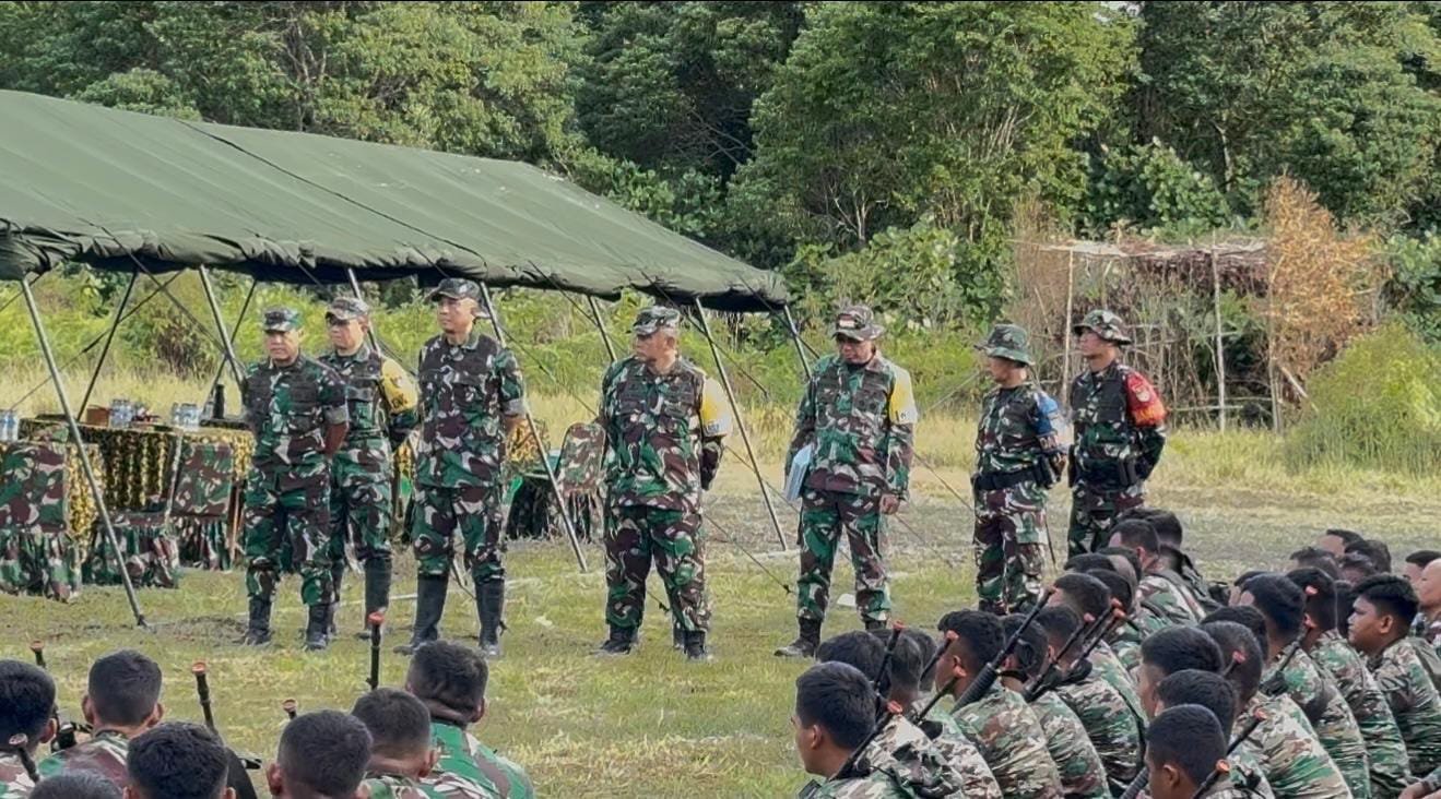 NATUNA || Pangdam XIX/Tuanku Tambusai Mayjen TNI Dr. Agus Hadi Waluyo S.A.P., M.M., CHRMP. meninjau langsung pelaksanaan Latihan Uji Siap Tempur (UST) Terintegrasi Batalyon Komposit 1/Gardapati di Desa Batubi, Kabupaten Natuna. Kegiatan ini turut dihadiri Dankodiklat TNI AD Letjen TNI Mochammad Hasan, Danpussenif Letjen TNI Iwan Setiawan, serta sejumlah pejabat teras Kodiklatad dan Korem 033/WP, Rabu 29/10/25.