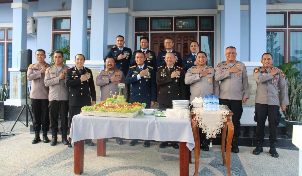 Kegiatan dimulai dengan sambutan hangat dan pemberian ucapan selamat ulang tahun kepada Danlanud Rsn, dilanjutkan dengan pemotongan tumpeng dan sesi foto bersama. Suasana penuh keakraban dan kekeluargaan mewarnai momen tersebut sebagai wujud nyata soliditas TNI–Polri di Provinsi Riau.