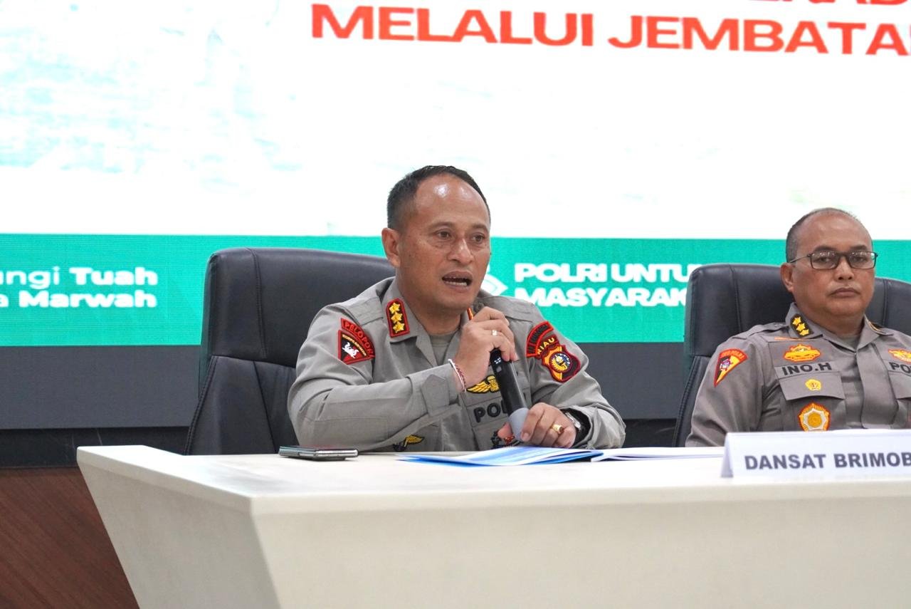 Konferensi pers tersebut dipimpin Wakapolda Riau Brigjen Pol Hengki Haryadi, didampingi Dansat Brimob Polda Riau Kombes Pol I Ketut Gede Adi Wibawa, Karo Ops Polda Riau Kombes Pol Ino Harianto, Dir Polairud Polda Riau, serta Kabid Humas Polda Riau Kombes Pol Zahwani Pandra.