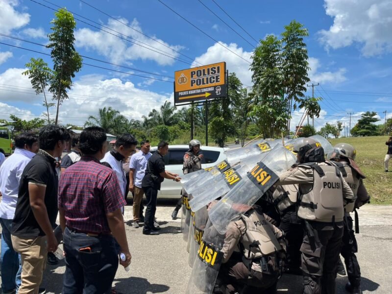 Eskalasi yang semakin meningkat membuat Kabag Ops melaporkan kepada Kapolres Kuansing, yang kemudian memerintahkan penurunan Ton PHH Brimob untuk melaksanakan tindakan tegas dan terukur. Pasukan Brimob selanjutnya melakukan lintas ganti serta menggunakan water cannon dan gas air mata untuk membubarkan massa. Provokator berhasil diamankan oleh Tim Tindak, dan situasi kembali kondusif.