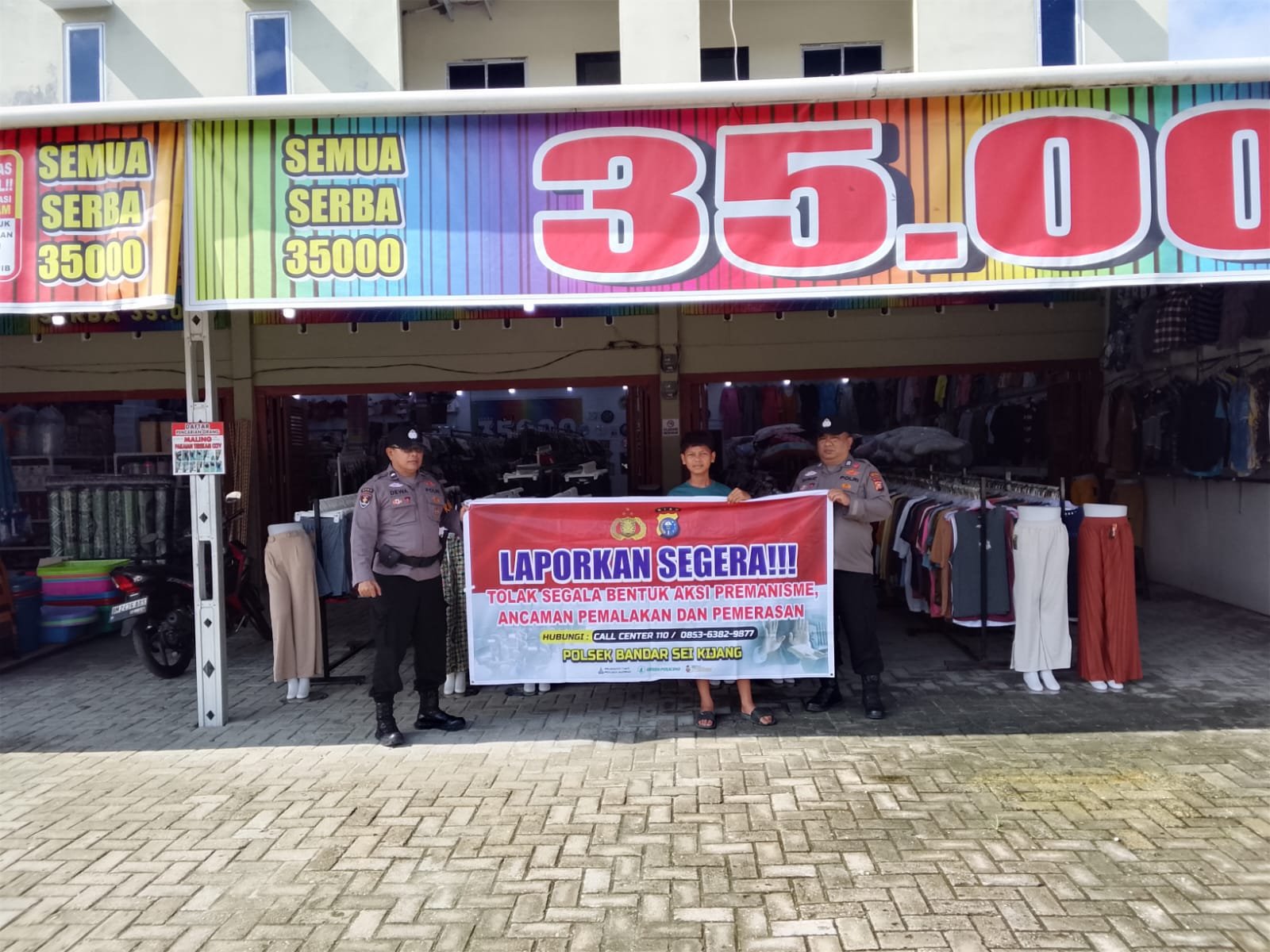 Polsek Bandar Sei Kijang Gelar Sosialisasi Menolak Premanisme di Toserba 35