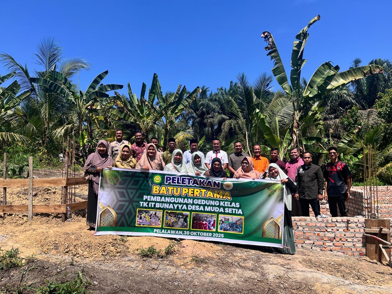 PELALAWAN II Polsek Bandar Sei Kijang diwakili oleh Kanit Reskrim IPTU Asbon Mairizal, S.Psi, M.H, menghadiri acara peletakan batu pertama pembangunan TK IT BUNAYYA di Desa Muda Setia Kec. Bandar Sei Kijang Kab. Pelalawan.