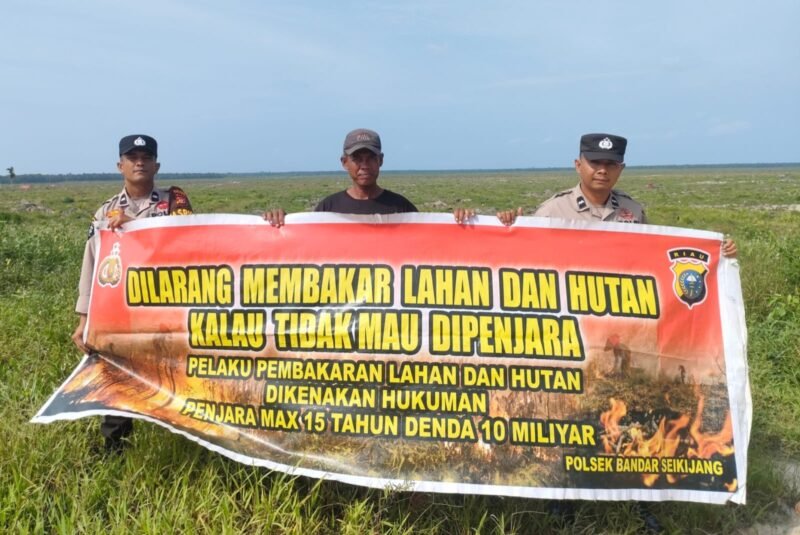 PELALAWAN II Personel Polsek Bandar Sei Kijang melaksanakan kegiatan patroli karhutla (kebakaran hutan dan lahan) dan penyebaran maklumat Kapolda Riau tentang larangan pembakaran hutan dan lahan. Kamis (26/03/2026), sekira pukul 11.00 WIB