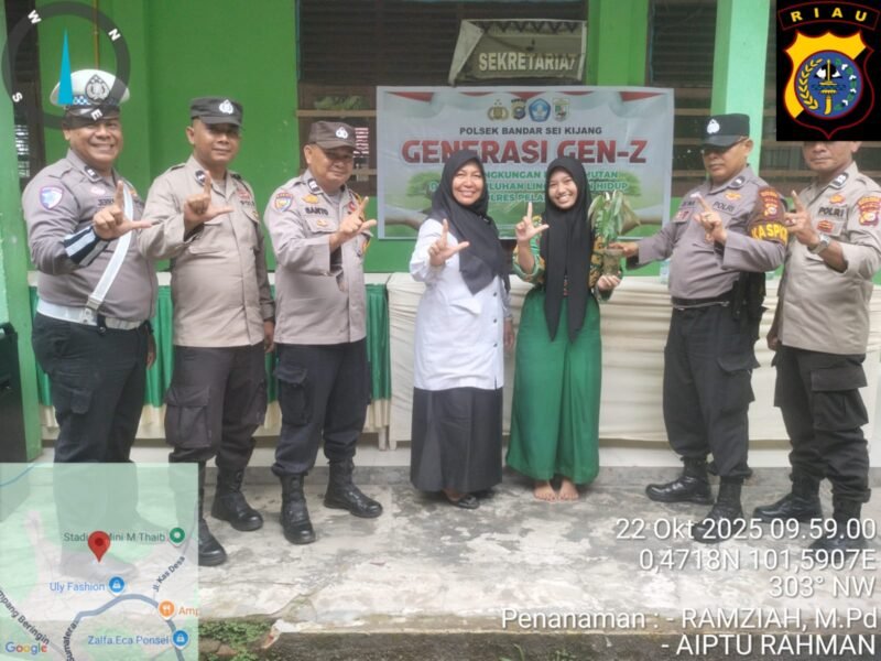 PELALAWAN II Polsek Bandar Sei Kijang melaksanakan kegiatan Sosialisasi dan Edukasi Green Policing di SMA Negeri 01 Bandar Sei Kijang dengan tema “GENERASI GEN-Z Cinta Lingkungan peduli hutan dan penyuluhan lingkungan Hidup Polres Pelalawan”. Kegiatan ini dilaksanakan pada hari Rabu, 22 Oktober 2025, pukul 09.00 WIB s/d 10.10 WIB.