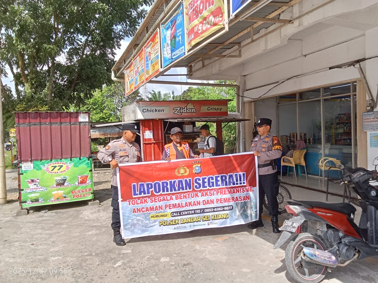 PELALAWAN II Polsek Bandar Sei Kijang melaksanakan kegiatan sosialisasi dan meningkatkan partisipasi masyarakat dalam menolak premanisme di Wilayah hukum Polsek Bandar Sei Kijang, Selasa (9/12/2025) pukul 09.00 WIB. Giat dipimpin oleh Ps. KA SPKT III Aipda Dedi Wahyu.