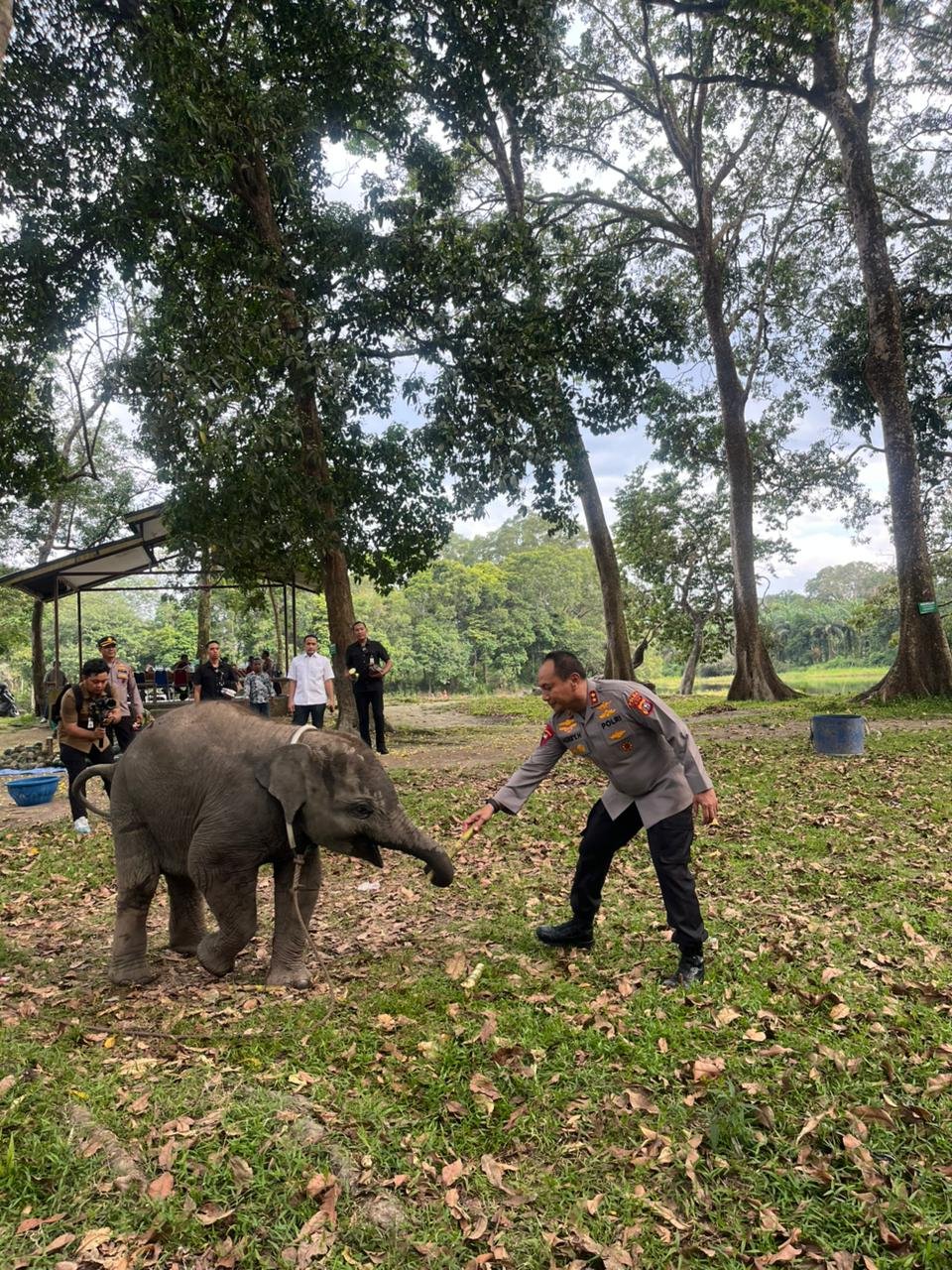 Ia datang bersama Kepala BBKSDA Riau Supartono, personel Bhabinkamtibmas, serta petugas konservasi gajah.