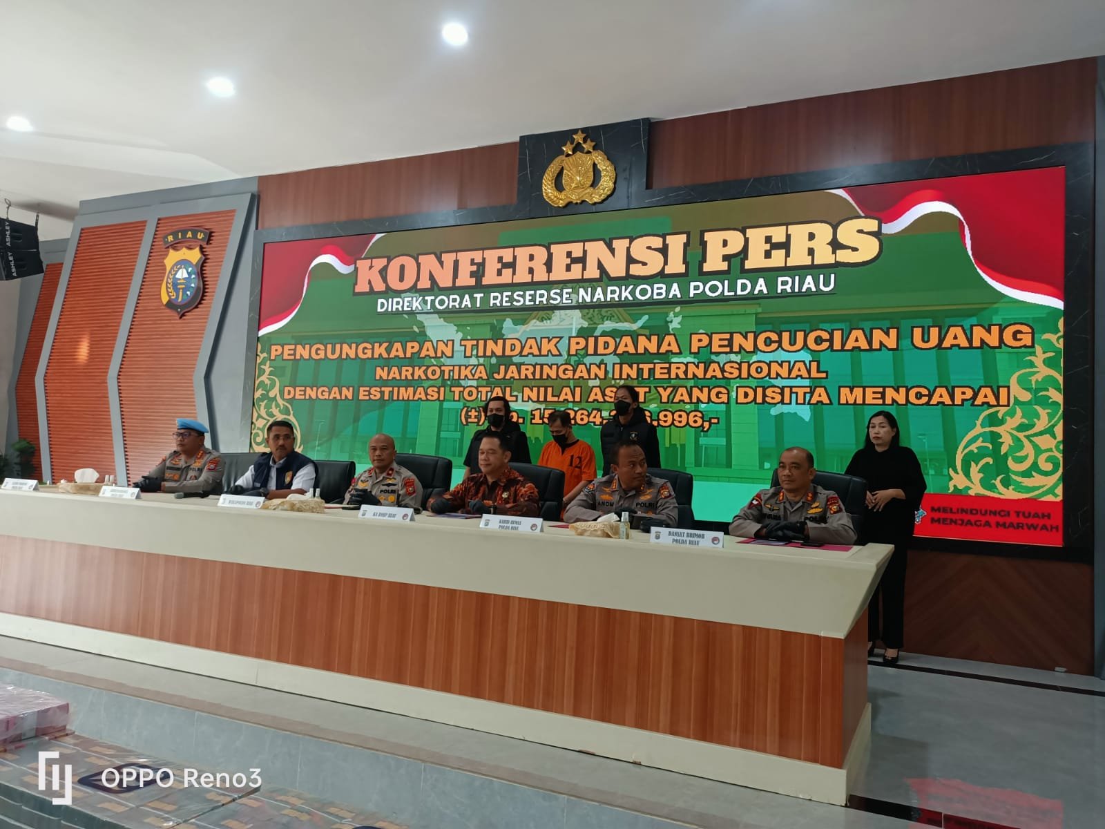 Dalam konferensi pers yang digelar di Mapolda Riau, Selasa (11/11), polisi berhasil mengungkap jaringan narkoba berskala internasional yang disertai tindak pidana pencucian uang (TPPU) dengan total nilai aset yang disita mencapai Rp15,26 miliar.